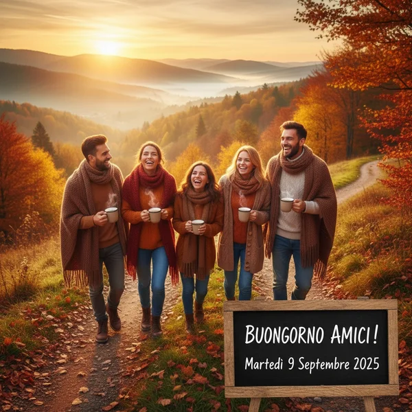 Le immagini buongiorno per il martedì 9 settembre 2025 seguono i trend stagionali: paesaggi autunnali, colori caldi come arancio, rosso e marrone e luce dorata dell'alba. Elementi come caffè fumante, sorrisi tra amici, foglie che cadono e dettagli naturali creano emozioni positive subito al risveglio.